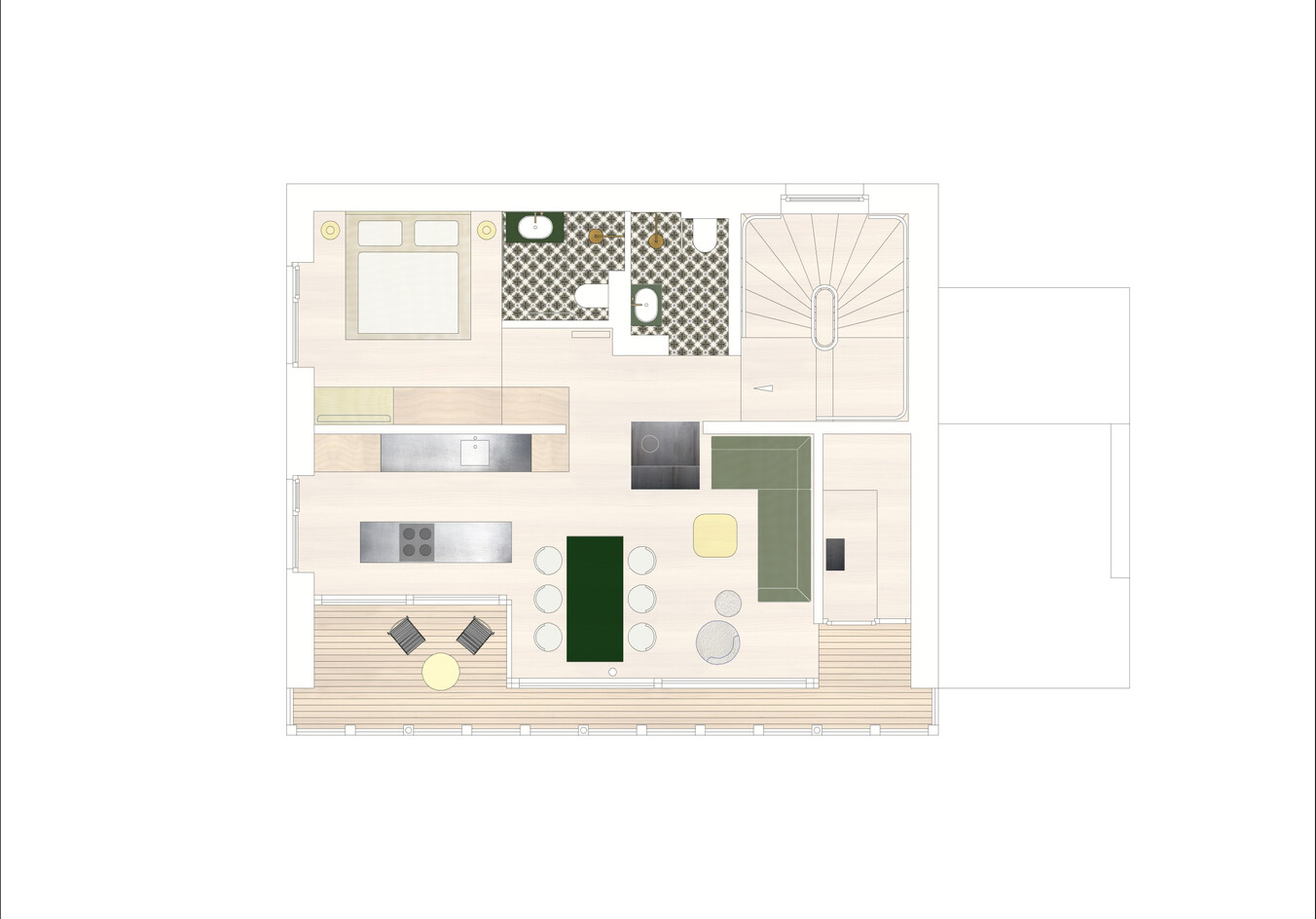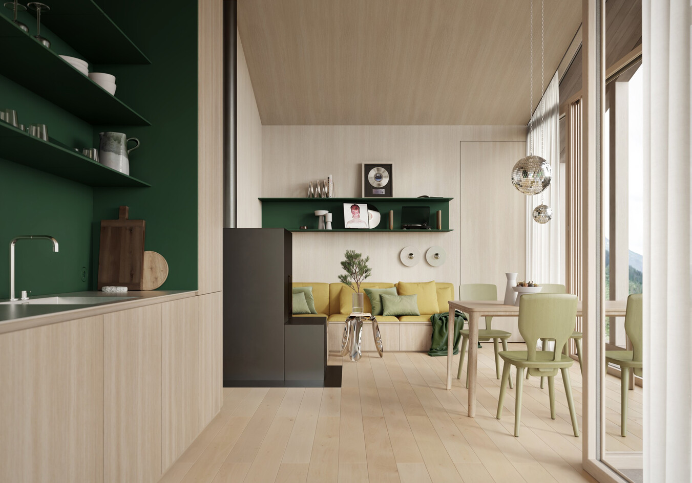 Hier dreht sich alles um die Musik. Diese Traum-Fewo befindet sich im dritten Stock und überrascht mit grünen Grundtönen und musikalischen Schmunzelmomenten.